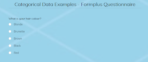 Categorical data as the name implies are usually grouped into a category or multiple categories. Well take a look at each of these four subtypes of data in our next article. For example hair colour favourite ice cream flavour colour of cars favourite subject in school is all categorical data.